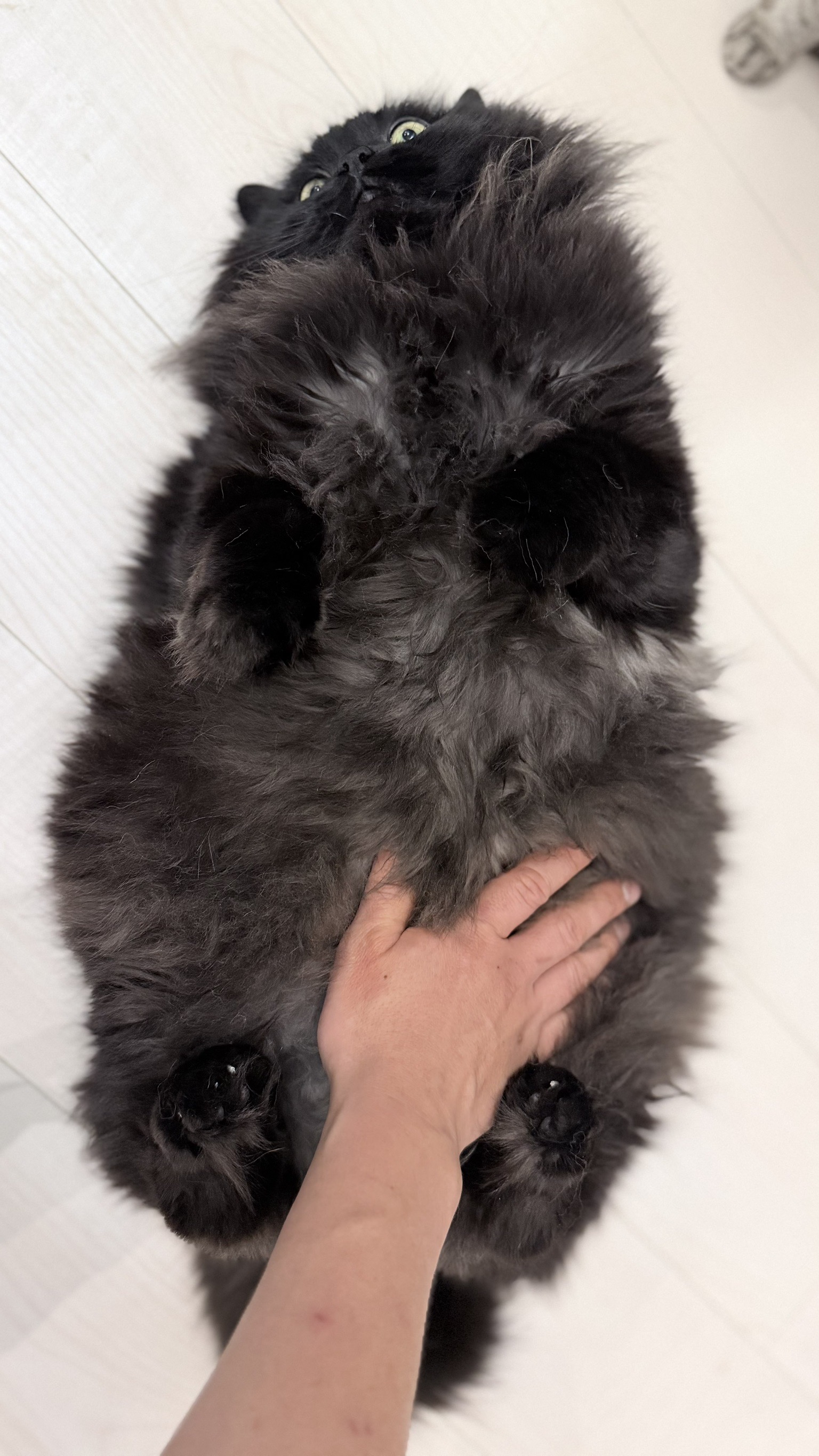 ブラックの長毛スコティッシュで、とてもゴージャスな雰囲気。関東にお住まいですが、こうして様子を拝見できるのは嬉しいものです。