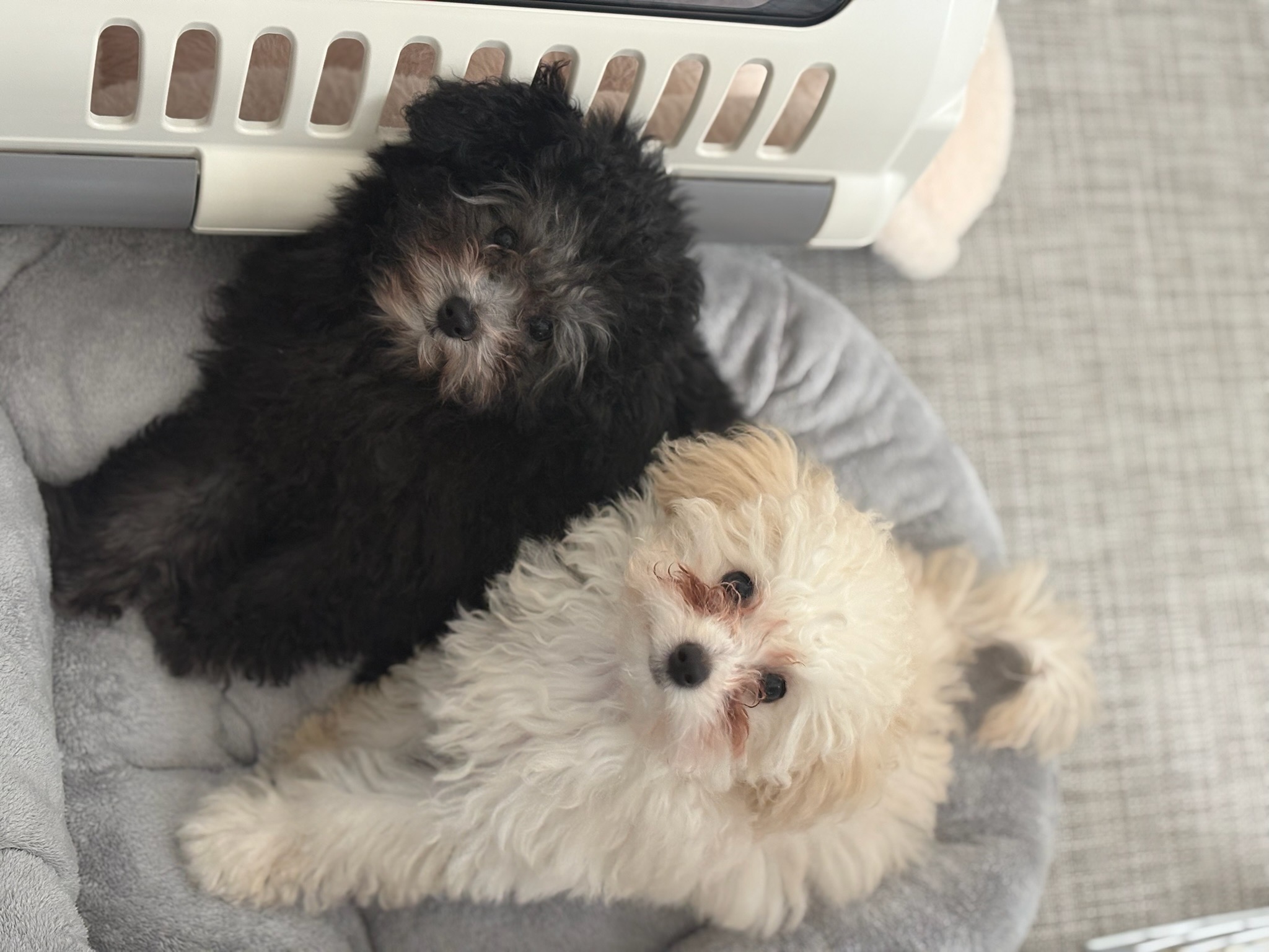 昨日巣立った、ホワイトのハピちゃんとシルバーのラキちゃんのお家から、お写真をいただきました。