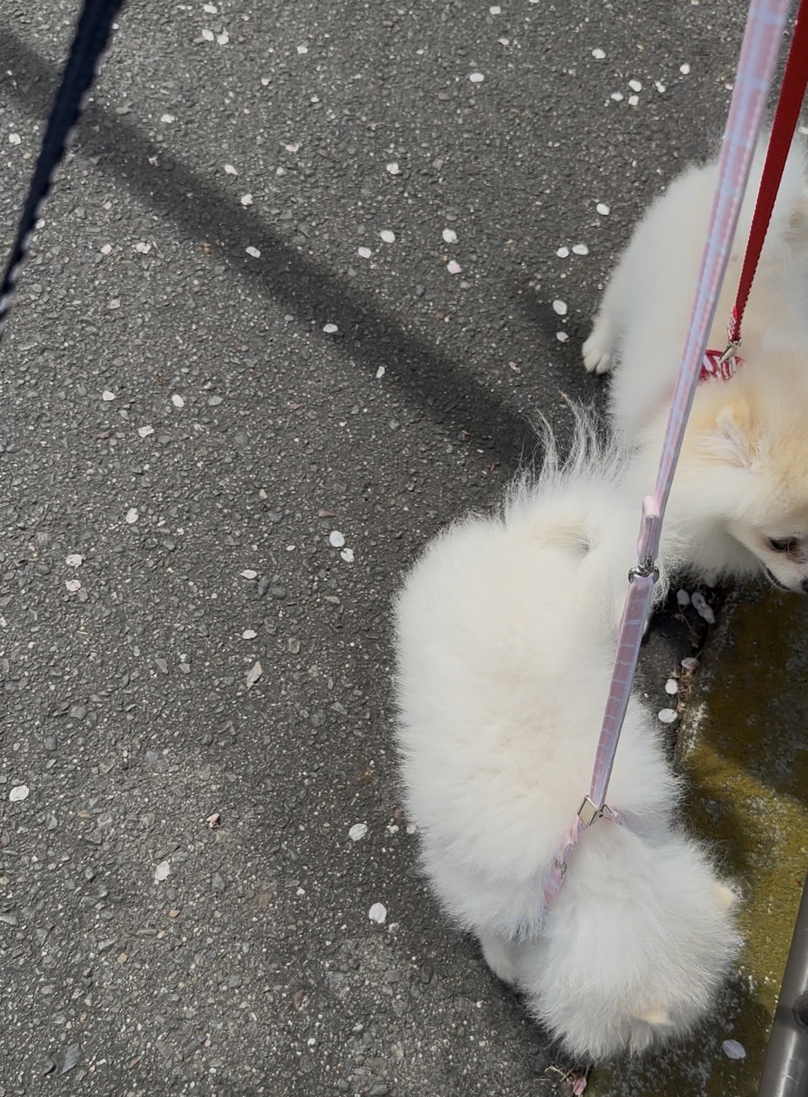 ポメラニアンベビーたち、カートを使わずにお散歩を楽しめるようになりました。